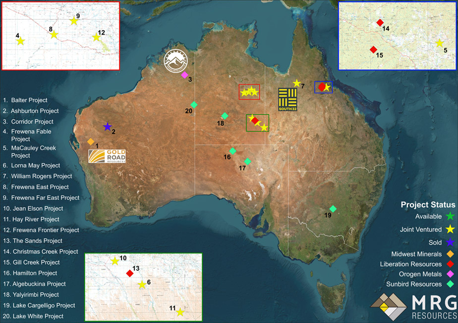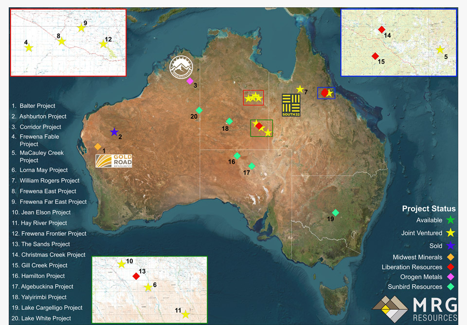 Since its inception, MRG projects have led to the creation of three new, independent companies to advance specific assets: Midwest Minerals Pty Ltd, Liberation Resources Pty Ltd, and Orogen Metals Pty Ltd. The Company also provides consulting services to the exploration industry through its sister company, MRG Consulting Pty Ltd.